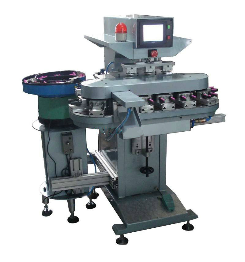 YC300P八色轉(zhuǎn)盤移印機是為大工件的套色印刷而精心設(shè)計的一種印刷機。是一種通用型印刷機,能廣泛粗用于日常用品、玩具、電子、電器、塑料、皮革、金屬、玻璃、輕工業(yè)及食品包裝等各種行業(yè)中。