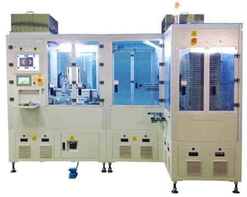 自動(dòng)化移印機(jī)設(shè)備,包括:旋轉(zhuǎn)伺服工作臺(tái)、移印機(jī)結(jié)構(gòu)、油盅,油杯油墨盤、送料機(jī)構(gòu)、出料通道、進(jìn)料抓取機(jī)構(gòu)和出料抓取機(jī)構(gòu),該旋轉(zhuǎn)工作臺(tái)上設(shè)置有若干個(gè)不斷轉(zhuǎn)動(dòng)而改變其與移印機(jī)構(gòu)、進(jìn)料抓取機(jī)構(gòu)和出料抓取機(jī)構(gòu)相對應(yīng)位置關(guān)系的移印工作位,該移印工作位至少包括進(jìn)料位、自動(dòng)移印位以及出料位,該送料機(jī)構(gòu)具有送料通道,該移印機(jī)構(gòu)和油墨盤位于旋轉(zhuǎn)工作臺(tái)的移印位周邊以對產(chǎn)品進(jìn)行移印操作,該送料通道出口和進(jìn)料抓取機(jī)構(gòu)位于旋轉(zhuǎn)工作臺(tái)的進(jìn)料位周邊以讓進(jìn)料抓取機(jī)構(gòu)將產(chǎn)品抓取至進(jìn)料位處,該出料通道入口和出料抓取機(jī)構(gòu)位于旋轉(zhuǎn)工作臺(tái)的出料位周邊以讓出料抓取機(jī)構(gòu)將產(chǎn)品抓取至出料通道中。本實(shí)用新型具有自動(dòng)化程度高和移印效果好的特點(diǎn)。